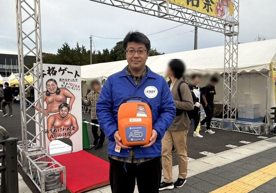 2025年10月19日に開催された「おおさき古川秋まつり」の救護所に設置するAEDを、当社の畠山社長が持込み協力いたしました